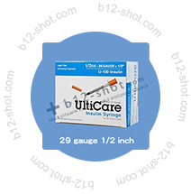 B12-Shot.com offers two types of needles; a larger Intramuscular (in the muscle) 25 gauge 1 inch needle for maximum intramuscular benefit and a smaller Deep Subcutaneous (under skin) 29 gauge ½ inch needle.